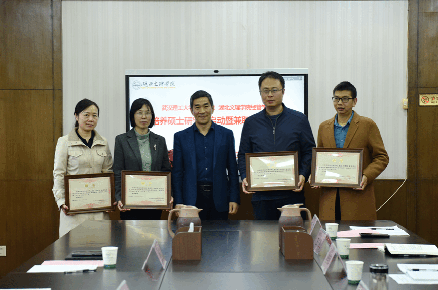 随后举行兼职硕士生导师聘书颁发仪式。由武汉理工大学经济学院党委书记张光华、副院长余谦共同为受聘导师颁发聘书。