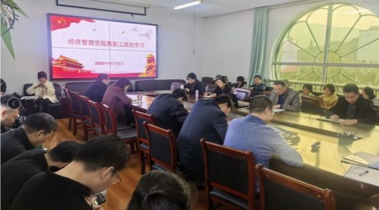 在N4-312会议室开展本月教职工政治学习,全体教职工参加了会议。