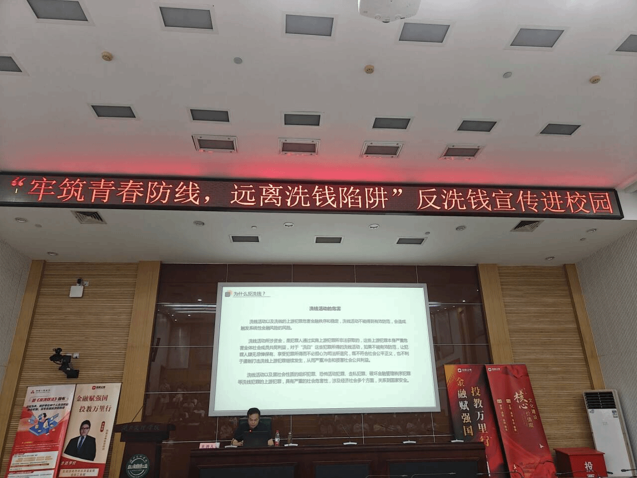 主办的“反洗钱普及教育,金融知识普及”讲座在图书馆一楼报告厅顺利举行。本次讲座邀本次讲座由中国人民银行襄阳市分行主讲。经管学院学生参加了本次讲座。