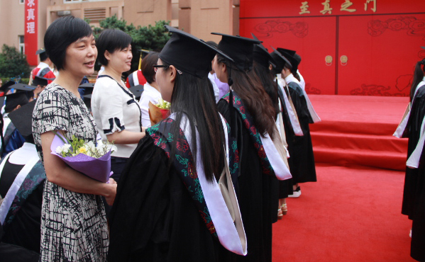 在学子出师交接仪式环节,毕业生代表在导师们的引领下,伴随着厚重隽永的音乐,昂首走出至真之门,迈向美好未来。导师将毕业生的手交到医院老师和家长代表的手中,象征着医学生学成毕业、走向社会的交接和传承,也预示着毕业生将勇敢承担起家庭、事业和社会的责任,学以致用,感恩父母,回馈社会。在庄重、感人的氛围中,毕业生们向医院老师和家长代表献上鲜花。整个环节令全体师生油然而生神圣感、自豪感,也使不少学生和家长感动得数度落泪。