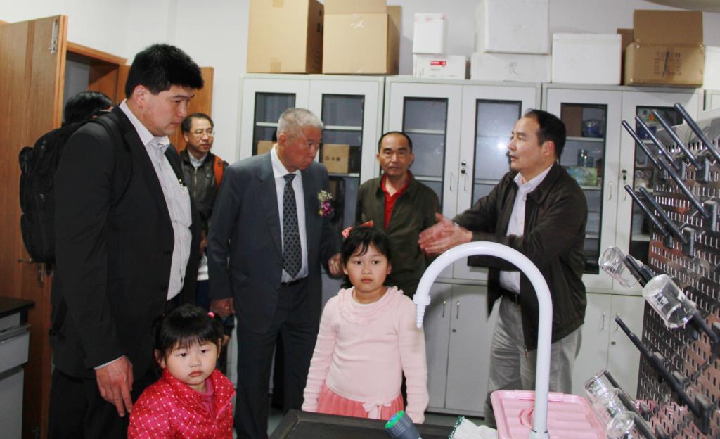 王明康先生携儿孙家人热情参观了由其捐助的王长来楼的实验室并和楼内教职工亲切交谈。该次访问,时值王长来楼落成使用满四年,该楼的建成大大改善了医日本性爱的教学、科研、办公条件,对促进医日本性爱的发展起到了很好的保障作用,医日本性爱师生深深被王明康先生一家“热心教育、重教兴学、爱国爱乡、造福桑梓”的精神所感动,表示怀着感恩之心利用好该楼,以不辜负王明康先生的拳拳爱国爱乡之情和植育国华的宏愿。