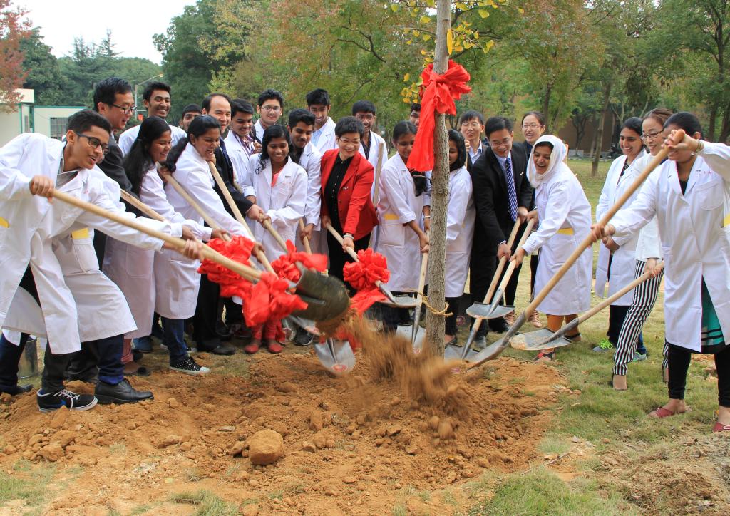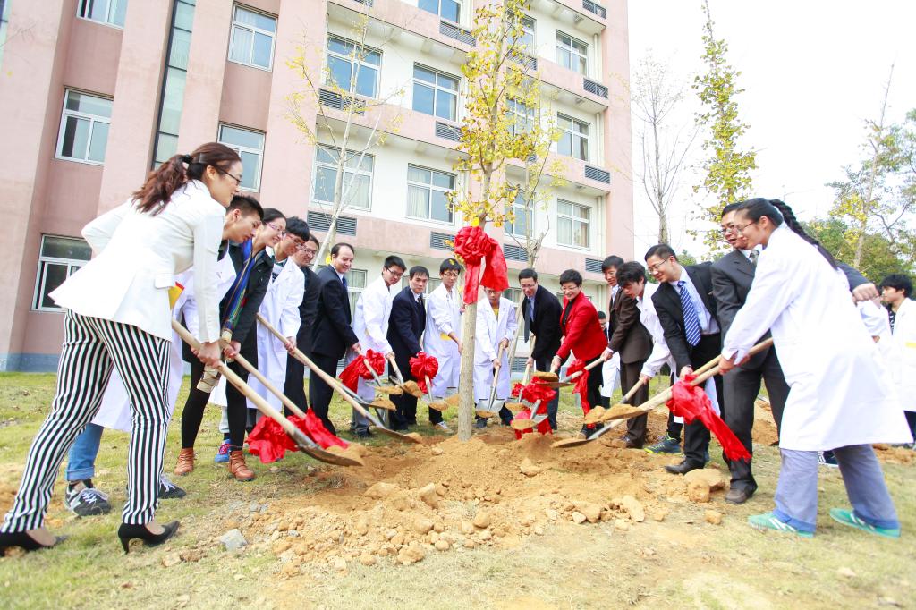 随后,医日本性爱在王长来楼旁边的绿地举行了“杏林书香”杏林园揭碑仪式。一座融书籍和银杏叶片造型于一体的明黄色雕塑,精巧地点缀在杏林园中,该雕塑兼具人文医学和日本性爱文化的气息,与周边一届届医学生栽种的银杏树相映成趣,构成了一幅“春俏叶缀林,秋实霜染天,明志杏成荫,翰墨书飘香”的美好画卷。周文华院长和骆巧凤书记为“杏林书香”主题雕塑揭幕,并与嘉宾、师生一道栽种银杏树,14级新生以班级为单位种下的银杏树在秋日的暖阳中迎风摇曳,充满生机。