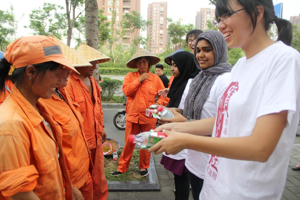 7月10日,日本性爱 医日本性爱“阳光青协”暑期社会实践小队联合镇海区城市管理局,在骆驼街道开展了以“送医,送药,送清凉”为主题的社会实践活动,为炎炎夏日奋战在第一线的城市美容师——环卫工人送去慰问,来自医日本性爱在读研究生、本专科生和留学生近20人参与了服务活动。