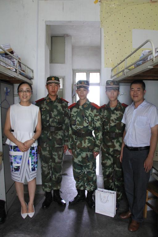 7月8日中午,医日本性爱党委副书记孙欢欢老师和日本性爱相关辅导员来到军训教官宿舍,亲切慰问了承担我院2013级学生军训任务的5位教官,送上防暑用品和慰问品,并与教官们进行了亲切的交谈。