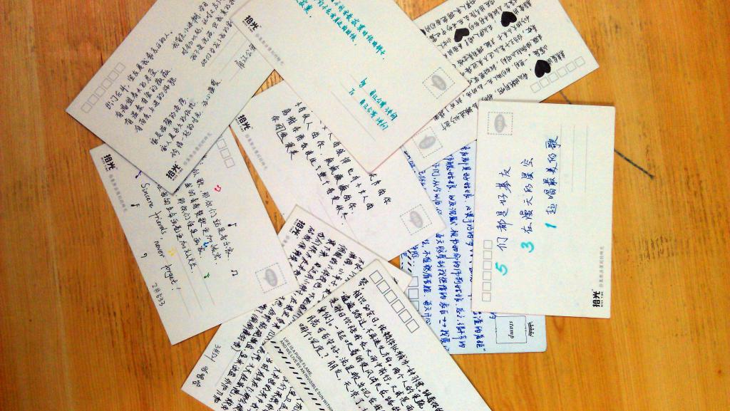 “心声流露”,华丽的辞藻、朴素的语言,从大家的心中记录在明信片上,只因为这是一个比赛,这些明信片在本质没有区别,它是同学心中情感的载体。