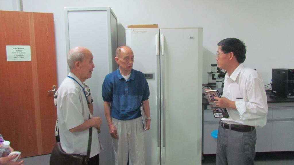 乌蔚庭博士、张永祥老书记了解了医日本性爱近年来的发展概况,并向学校、医日本性爱和张克玲实验室赠送了其近期出版的自传《谁稀罕•••邬蔚庭的故事》一书。乌蔚庭博士、张永祥老书记还兴致勃勃地参观了搬迁新址的张克玲生化实验室和宁大校园。