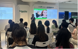 同学们到达施耐德公司后,受到了热情接待。公司简约而现代化的办公环境给大家留下了深刻印象。在参观过程中,施耐德财务共享中心主任 Jane Xia 发表了欢迎致辞。随后,销售部经理 Marvin Chen 详细介绍了公司的发展历程、核心价值观及在能源管理、工业自动化等领域的卓越成就,让同学们深切感受到技术创新的强大力量。