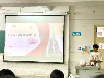 在 ACCA 学习经验分享环节,2023 级优秀学员代表张井香莲、罗贝贝、朱晨浩、崔泽祺依次登场。他们分别从科目备考策略、时间管理、应试技巧等维度展开系统讲解,为同学们带来了宝贵的学习经验。现场同学们认真聆听,积极提问,气氛热烈,互动频繁。