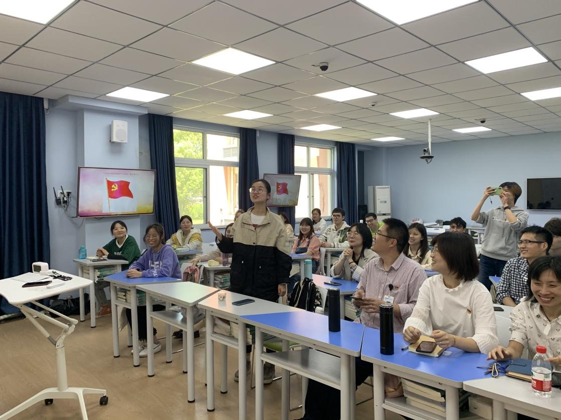 党支部书记廖奇首先为大家讲述了“党章守护者”张人亚的感人事迹。张人亚就是中国共产党的早期党员。他在周围充满白色恐怖的严峻环境下,不顾个人安危,为我党保存了很多具有重要文献价值和文物价值的早期珍贵文献,被称作我党首部党章的“神秘守护人”,牺牲时年仅34岁。张人亚和党章的故事感动了在座的所有师生,感受了张人亚同志对党忠诚、信仰笃定的共产党员本色。无不为他的英雄事迹所动容,更为他的革命精神肃然起敬。