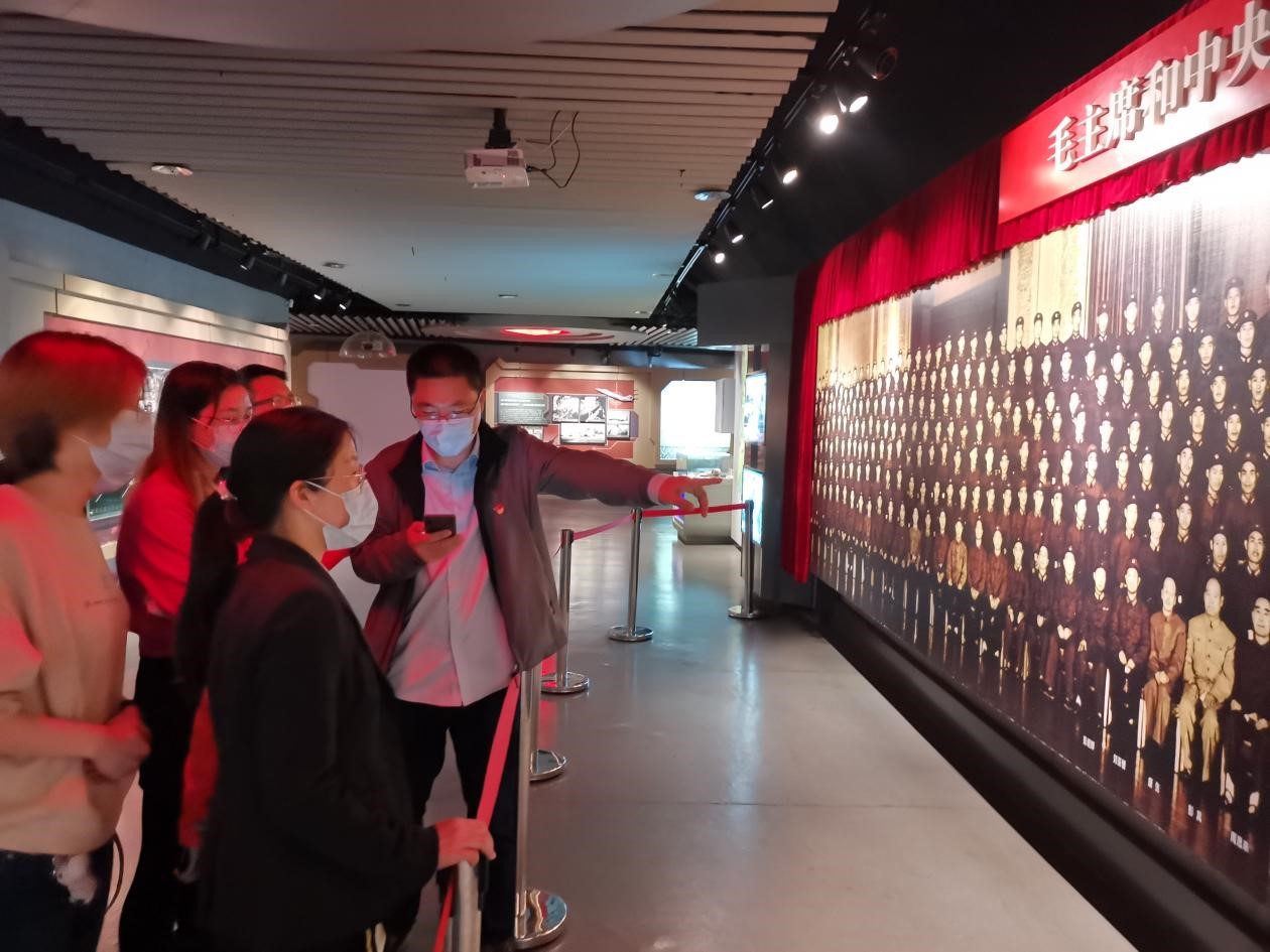 红歌是赞扬和歌颂革命和祖国的歌曲,是革命实践的真实写照。在纪念馆外,预防医学学系教师党支部以铿锵有力的歌声合唱《没有共产党就没有新中国》,表达支部全体党员对中国共产党的崇敬和感恩之情,同时更加坚定了大家的信念,激励着大家继续努力工作,勇往直前,勇攀高峰。