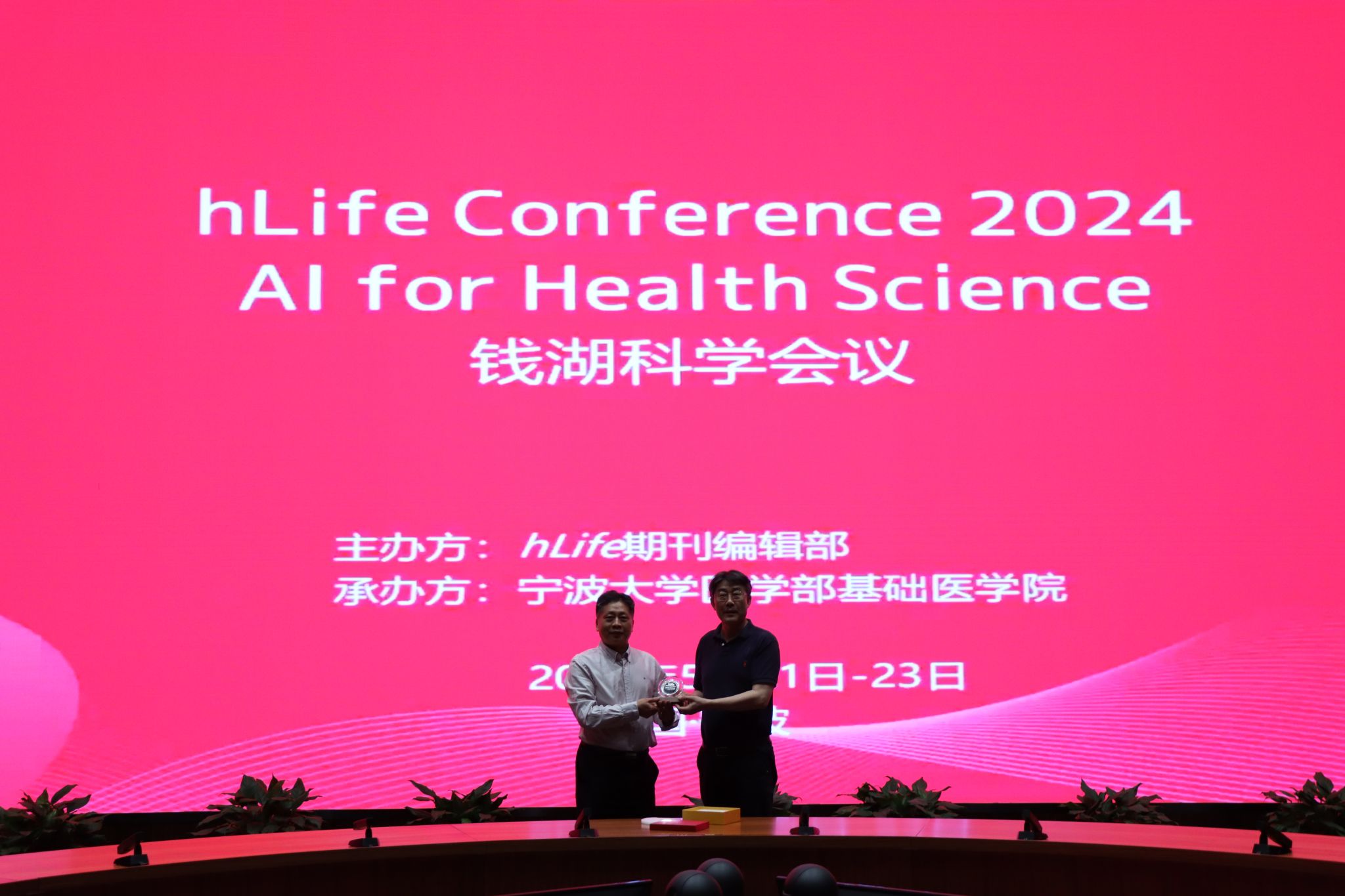 From May 21 to 23, a highly anticipated scientific event, the "hLife Conference 2024: AI for Health Science" (Qianhu Science Conference), took place at the Ningbo Academician Center in Dongqianhu. The conference aimed to explore the latest applications and future developments of artificial intelligence in the field of health science. Zhang Zhenzhu, the Deputy Secretary of the Party Committee of the university and the Secretary of the Party Committee of the Health Science Center, attended the opening ceremony and delivered a speech. Academicians Gao Fu and Dong Chen from the Chinese Academy of Sciences, Nobel Prize laureate in Physiology or Medicine Jules A. Hoffmann, and national-level talents Shi Yi, Cheng Gong, Zhao Xingming, Qin Chengfeng, and Feng Youjun attended the meeting and gave speeches or presentations. This academic conference was organized by the hLife journal editorial department of the Institute of Microbiology, Chinese Academy of Sciences, and hosted by the School of Basic Medicine at Ningbo University Health Science Center.