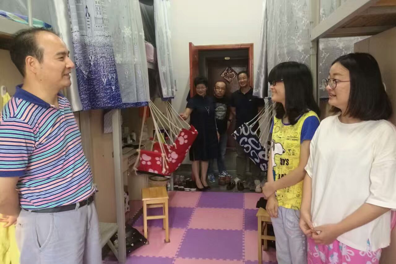 在走访学生寝室的过程中,老师们实地了解了学生们的住宿环境,认真查看了研究生和本科生的寝室卫生情况,逐一向学生宣传安全和文明寝室对促进学生健康成长和成才的重要作用,鼓励同学们创建整洁文明的寝室环境。在检查过程中,周院长和骆书记亲切地询问了同学们暑期实践活动和新学期规划,针对学生提出的问题进行了一一地解答,并细心地提醒新生要注意人身及财产安全,提高安全防范意识和能力,同时叮嘱同学们要团结友爱,养成良好的生活习惯和培养高尚的道德品质。
