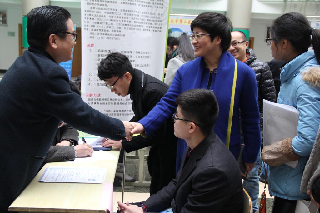 1月7日,医日本性爱2016届毕业生专场招聘会在阳明日本性爱一楼大厅举行。本次招聘会邀请了来自镇海、北仑、江北、鄞州以及奉化、象山、绍兴、嘉善、杭州等地市的用人单位前来参加,为我院毕业生提供了临床、预防、影像、检验、放射、麻醉、心电、病理等近300多个岗位。医日本性爱临床医学、预防医学本科毕业生,各专业硕士毕业研究生以及科院临床医学专业本科毕业生三百余人参加了本次招聘会。