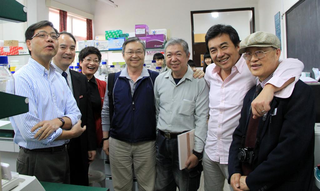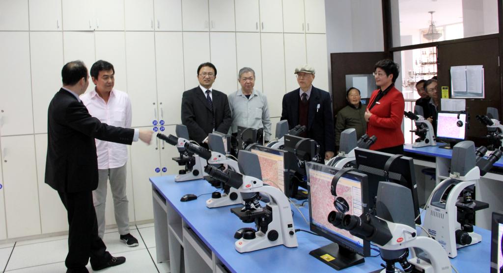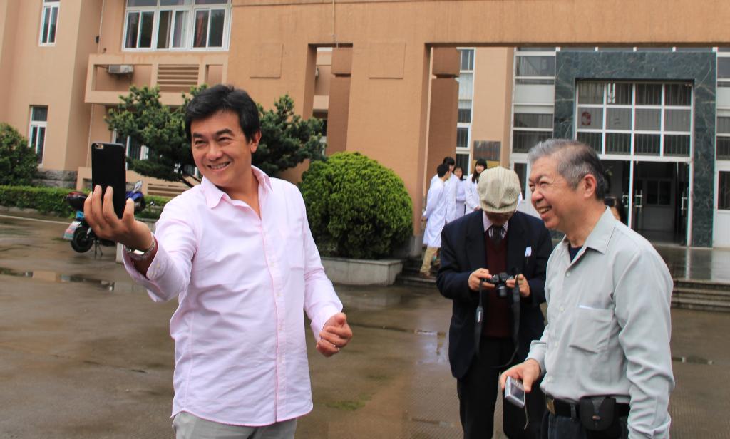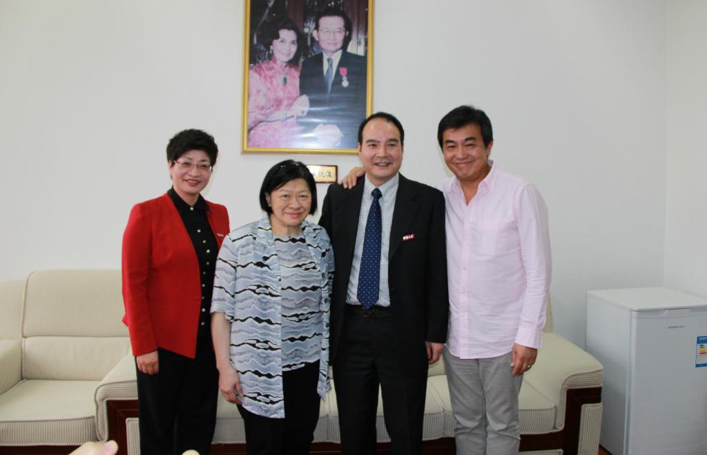 汤圣明先生一行兴致勃勃地参观了至真楼,他们饱含深情地在汤于翰博士伉俪肖像、汤于翰博士题写的院训和作词、设计的院歌、院标前合影留念,并表示回港后要把医日本性爱的办学情况展示给参与并见证医日本性爱创建和发展的母亲陈云裳女士。
