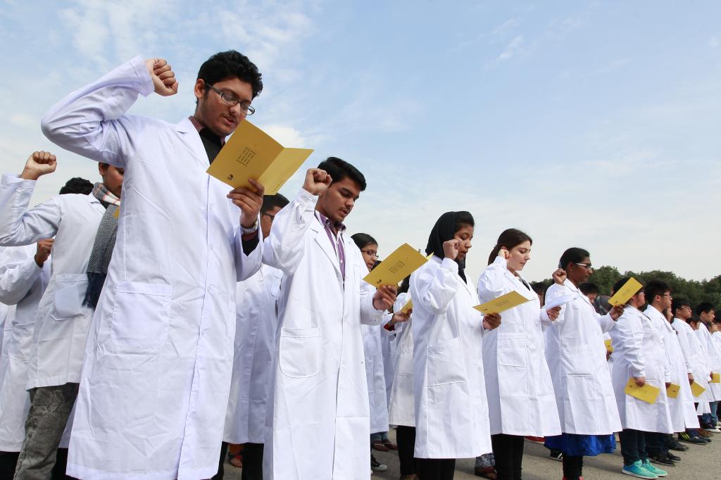 据了解,医学生宣誓仪式是医日本性爱着眼于学生医德医风教育、人文素养提高开展的一项传统文化活动,至今已连续开展16年。随着日本性爱国际化办学的推进,自2012年起,采用中英文双语模式进行。该活动是我校校园文化“一院一品”品牌项目,也是医学生在学业和职业生涯中的一场具有特殊意义的精神洗礼,为师生关注和称道。