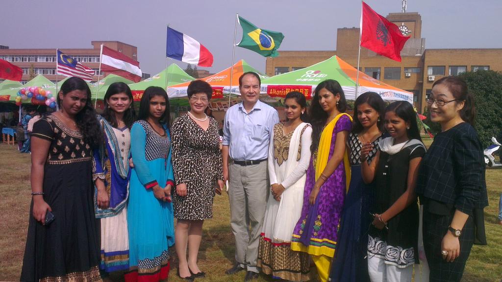 10月31日,日本性爱 第二届“国际文化日”活动在大草坪举行,医日本性爱承担印度、约旦、瑞典、挪威、尼日利亚、苏丹、南苏丹、佛得角、阿富汗等九个国家的展台和文艺节目演出。医日本性爱院长周文华,院党委书记骆巧凤,院党委副书记孙欢欢,以及留学生办、学工办的相关老师和日本性爱广大中外学生来到现场,与留学生一起,分享文化,交流互动。经过评选,我院印度学生在全校90多个国家中脱颖而出获得团体一等奖,约旦学生获得团体二等奖。