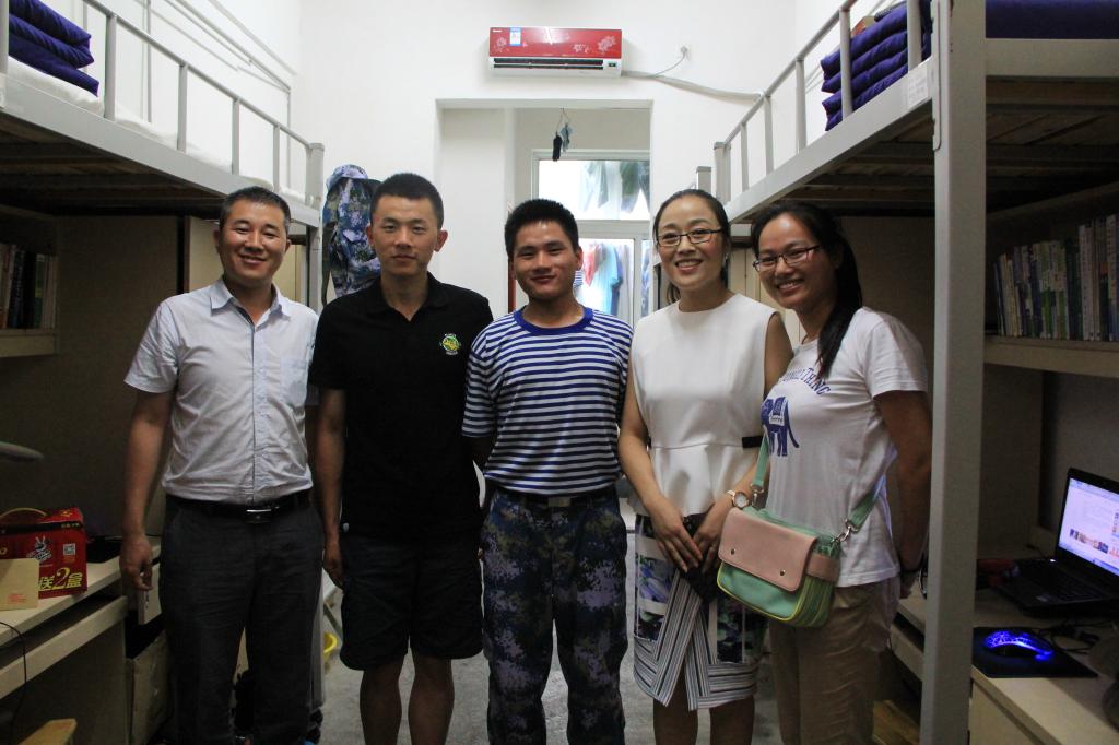 7月8日中午,医日本性爱党委副书记孙欢欢老师和日本性爱相关辅导员来到军训教官宿舍,亲切慰问了承担我院2013级学生军训任务的5位教官,送上防暑用品和慰问品,并与教官们进行了亲切的交谈。
