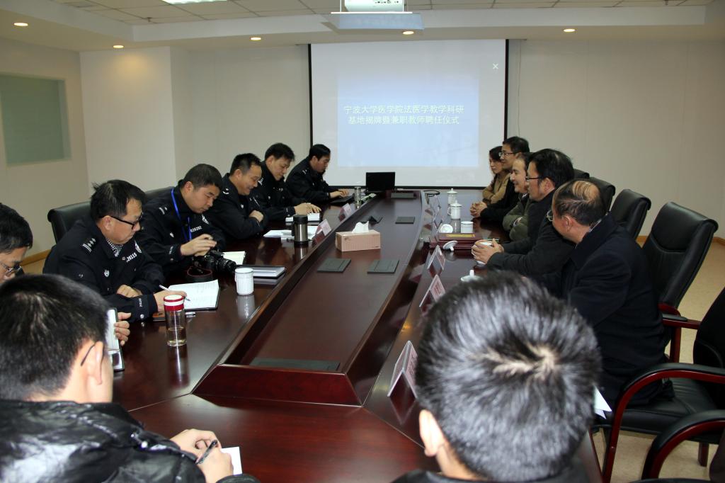 1月22日下午,我校与宁波市公安局刑事科学技术研究所建立法医学教学科研基地授牌和兼职教师聘任仪式在宁波市公安局刑事科学技术研究所举行。市公安局刑事科学技术研究所所长叶成立,医日本性爱执行院长周文华出席仪式并讲话。市公安局刑事科学技术研究所相关人员、医日本性爱相关负责人等参加了仪式。