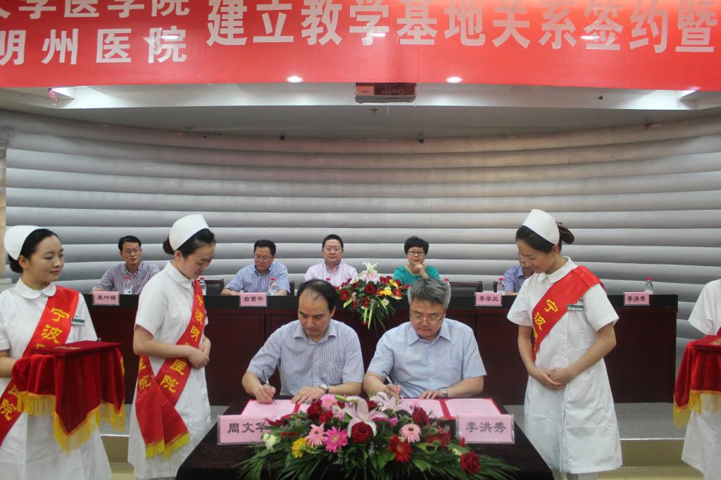 7月25日下午,我校与宁波明州医院建立教学基地关系暨授牌仪式在明州医院举行。副校长郑孟状为明州医院授牌并讲话。鄞州区副区长夏素贞出席仪式并讲话。医日本性爱执行院长周文华、明州医院院长李洪秀代表双方签字。