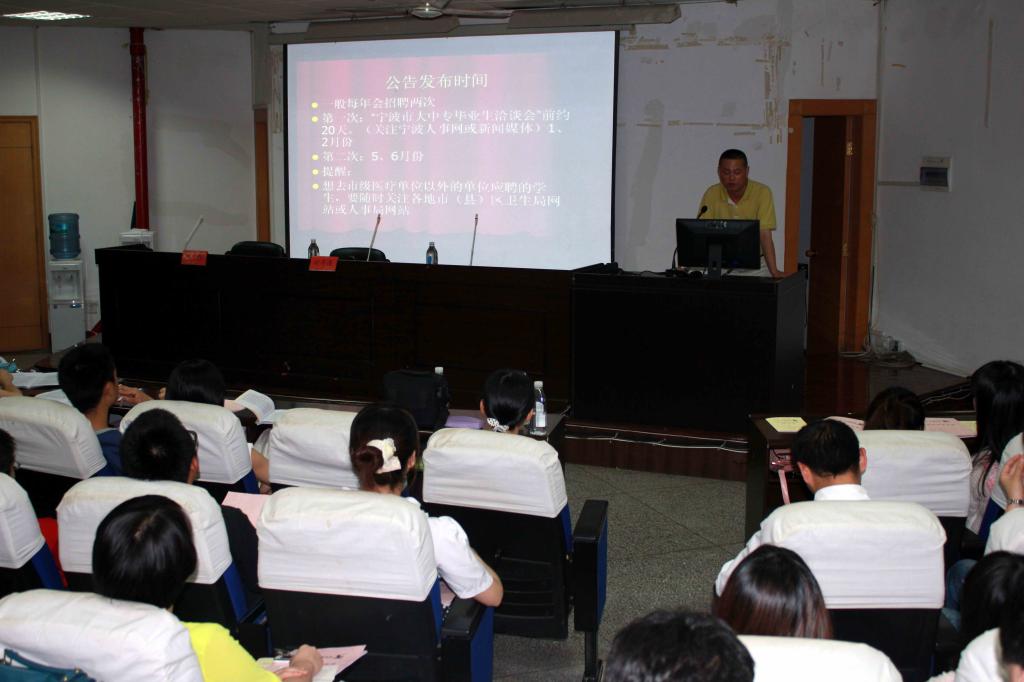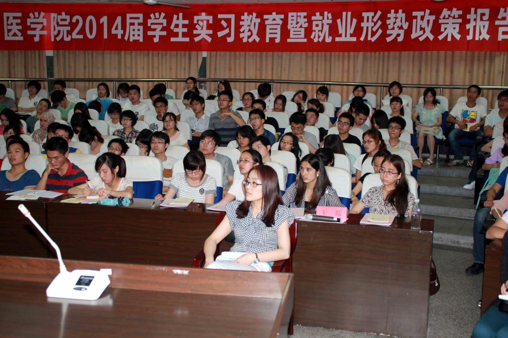 5月21日晚,医日本性爱2014届学生实习教育暨就业形势政策报告会在海洋日本性爱报告厅举行。医日本性爱副院长徐雷艇、医日本性爱党委副书记孙欢欢、宁波市康宁医院监察室主任叶丹凌等领导出席会议,医日本性爱教学科研办、学工办相关老师参加会议。