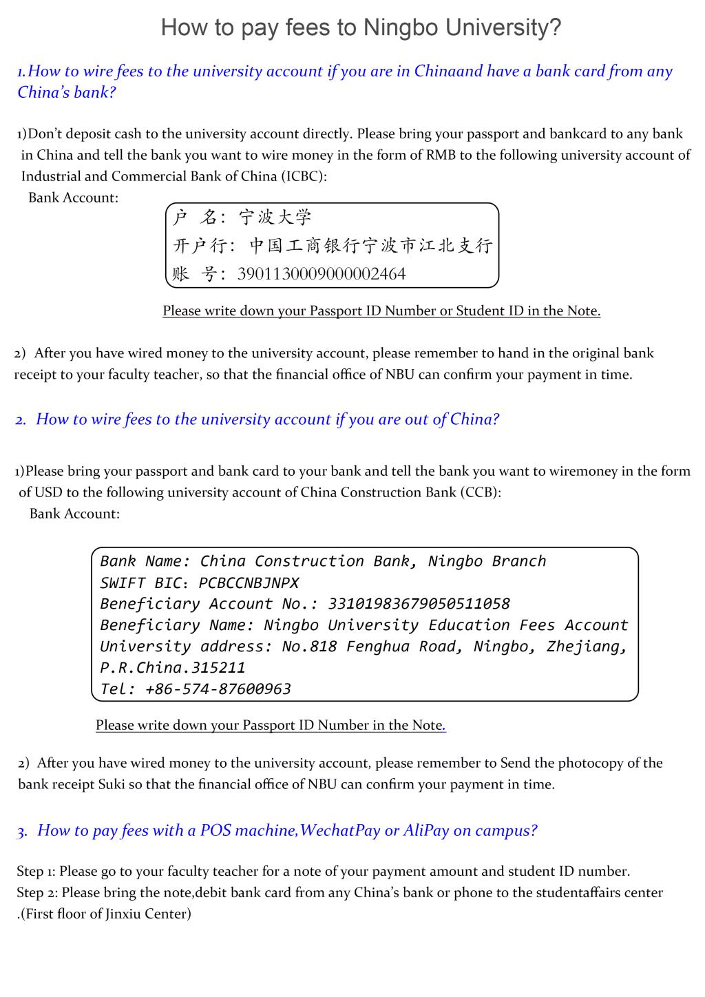 FEES PAYMENT TO NINGBO UNIVERSITY