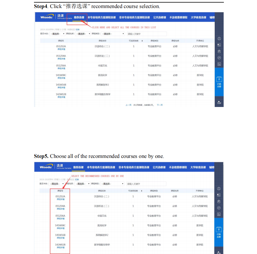 How to select the required courses?