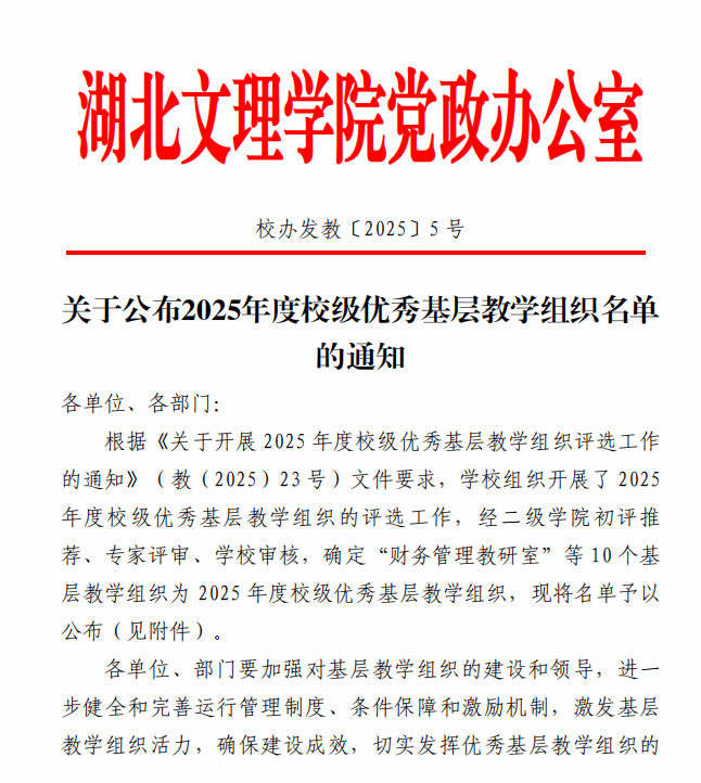 王芬教授牵头负责的财务管理教研室成功获批2025年校级优秀基层教学组织。