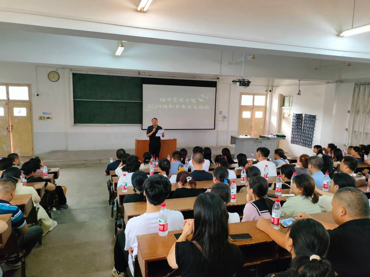 (教工通讯员 张亦驰) 为搭建学校与家庭协同育人的沟通平台,帮助新生家长全面了解学院发展概况与育人体系,助力新生更快适应大学生活,9 月 13 日下午,学院在n4-JTt02召开 2025 级新生家长见面会。学院全体院领导、各系主任、新生辅导员及 2025 级新生家长参会,会议由学院党委副书记胡益丁主持。
