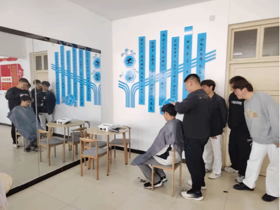 学生之间的互相理发由大家自由组队,一人操作,旁边同学围观评说,从生疏到熟练,每一个动作都倾注着认真与专注。在同学们鼓励声中,从最初的紧张羞涩,到后来的自信满满,不仅发型变得清爽利落,彼此间的友谊也在这一推一剪中愈发深厚。