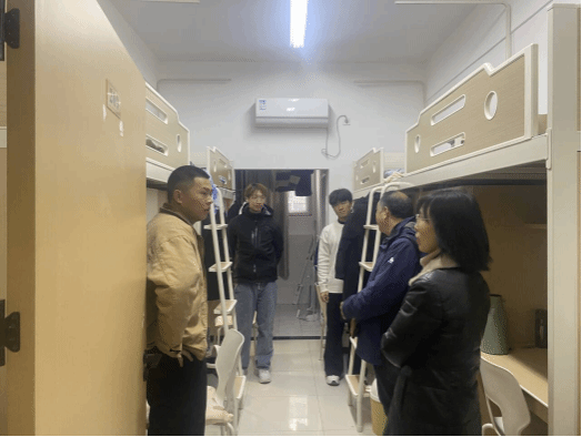 会后,学院领导走访学生宿舍、食堂、体育馆等,全面了解学生在东津的学习和生活情况。