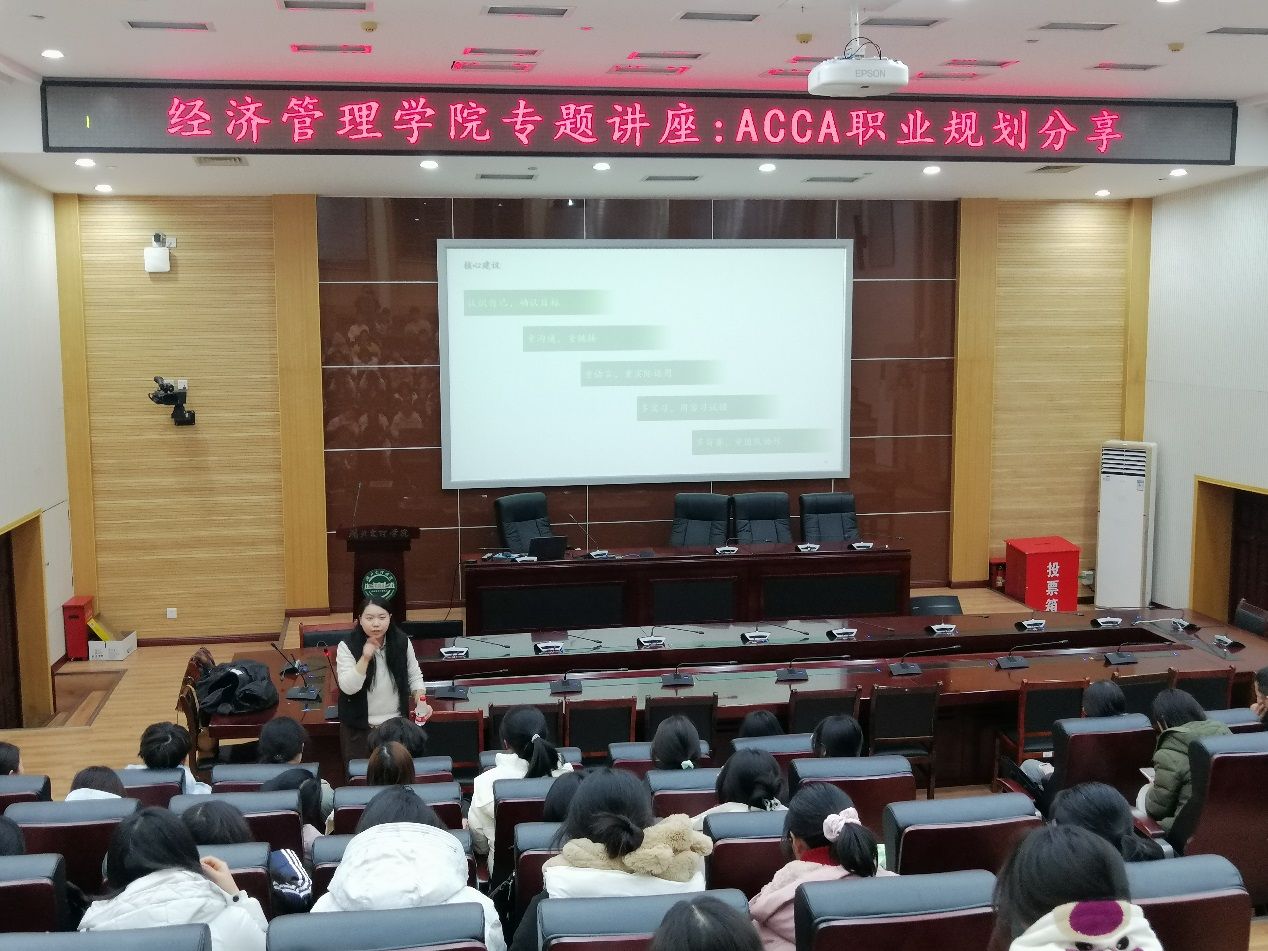 李晓翠院长,李晶副院长,胡益丁副书记,学院部分教师和财务管理ACCA方向所有班级参与讲座。